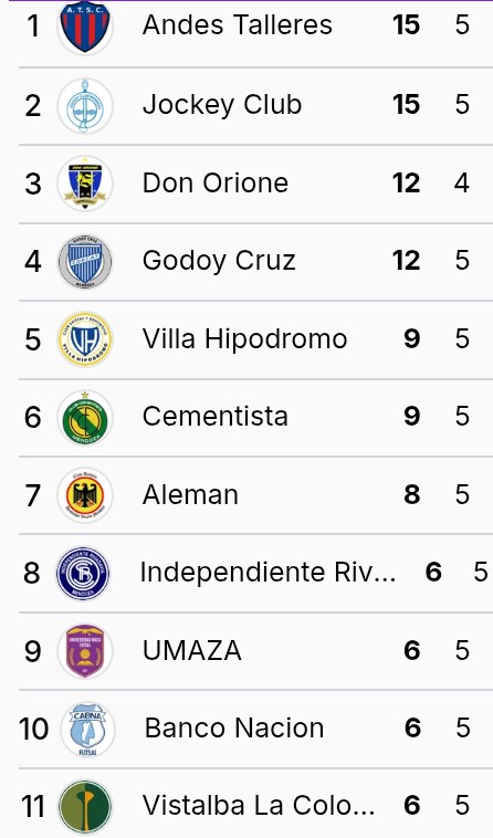 En el adelantado de la quinta fecha, Andes Talleres superó 4 a 1 a Banco Nación y sigue con el puntaje ideal con cinco partidos jugados y cinco victorias. Los goles azulgranas los marcaron Lucas Rodriguez, Santi Martinez, Pachorra Gonzalo Aveiro y Juan Cruz Roldan. Para los bancarios convirtió Axel Gomez. La primera parte terminó 2 a 1 para Andes Talleres.